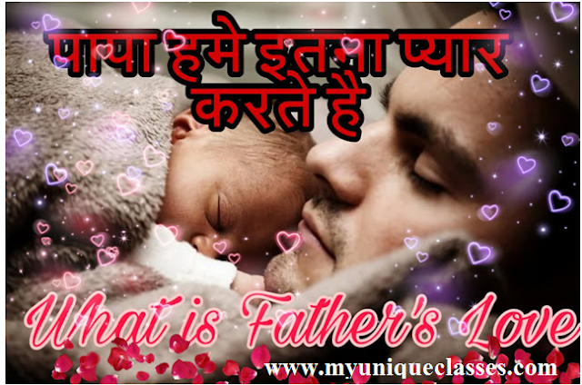 लेकिन इसका मतलबये नही किपापा प्यार नहींकरते हैं। प्यारतो बहुत करतेहैं पापा अपनेबच्चों से। परवो अपना प्यारदिखाते नहीं हैछुपा कर रखतेहैं पर पापाअपने बच्चों कीसब ख्वाहिश पूरीकरते हैं उन्हेंसब कुछ देतेहैं जो उन्हेंचाहिए होता है।